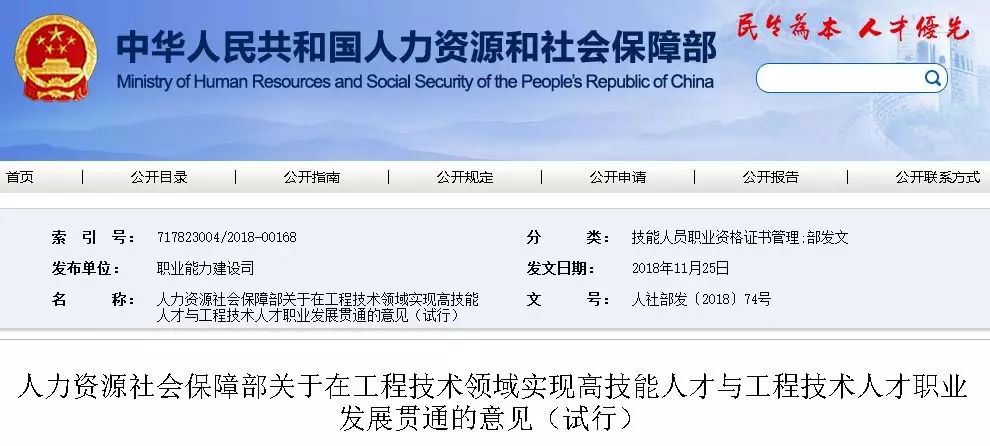 2019年2月1日,人力资源社会保障部官网发布《关于深化工程技术人才职称制度改革的指导意见》,意见提出: